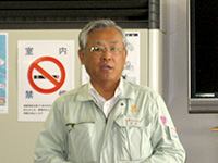 ○次に朝礼を行う。事務所から順次朝礼終了後