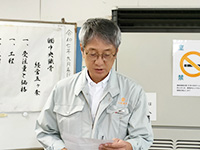 ○次に朝礼を行う。事務所から順次 朝礼終了後